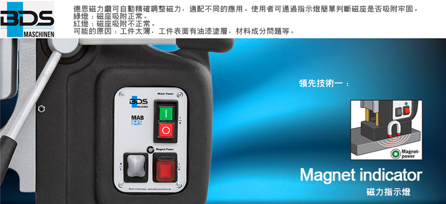 介紹:ProfiPLUS類別的德國制造磁力鉆孔機主要供工廠和機械工程的用戶使用。 MAB 485 ProfiPLUS課程的最佳入口:在工作坊和外出工作中不可或缺。 MAB 485的優(yōu)點 - 連續(xù)電子控制電機輸出和速度。鉆芯和麻花鉆,counters孔,鉸孔,螺紋切削。兩級齒輪箱,非破壞性的油浴變速箱。用于車間和裝配應(yīng)用的多功能磁力鉆孔機。功能強大且可靠的105安培雙絕緣電機。 17-14“高,29磅高速變速油浴變速箱,適用于環(huán)形切割機和麻花鉆。專為連續(xù)使用而設(shè)計。智能電子扭矩控制。鉆至2”直徑,最大可達1516“直徑。環(huán)形切割器扭曲鉆孔直徑達78“。攻絲能力為316“至1516”Dia。綜合切削油藏。自動內(nèi)部潤滑。旋轉(zhuǎn)底座(型號MAB 485 SB)。無鍵鉆夾頭。集成安全:綠色/紅色LED磁力指示器,安全操作。內(nèi)部電纜布線。簡單的符合人體工程學(xué)的控制裝置,用于單手操作緊急關(guān)閉功能。