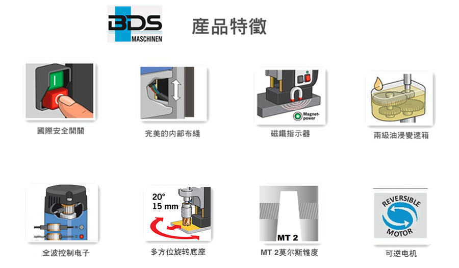 介紹:德國(guó)制造MAB 485 SB磁力鉆是ProfiPLUS類(lèi)磁力鉆的最佳介紹 - 具有旋轉(zhuǎn)底座調(diào)節(jié)功能。在進(jìn)行鉆井工作時(shí)無(wú)意中或在水平情況下對(duì)操作員進(jìn)行有形的減輕。一個(gè)好主意變?yōu)楝F(xiàn)實(shí):BDS現(xiàn)在提供四種磁力鉆,具有兩種性能類(lèi)別的可移動(dòng)磁力調(diào)節(jié)功能。旋轉(zhuǎn)底座的工作原理:將磁力鉆大致放置到位,激活磁鐵,釋放調(diào)節(jié)功能并輕松調(diào)節(jié)。旋轉(zhuǎn)底座使鉆頭能夠放置在正確的位置,而無(wú)需同時(shí)保持磁力鉆的整個(gè)重量。即使磁力鉆用鏈條固定,這種浮雕也是工作安全性的另一個(gè)因素。 MAB 485旋轉(zhuǎn)底座磁力鉆的優(yōu)點(diǎn)連續(xù)電子控制電機(jī)輸出和速度,鉆芯和麻花鉆,counters孔,鉸孔,螺紋切削。兩級(jí)齒輪箱,非破壞性的油浴變速箱。帶有旋轉(zhuǎn)底座,可調(diào)節(jié)功能,便于鉆頭定位。